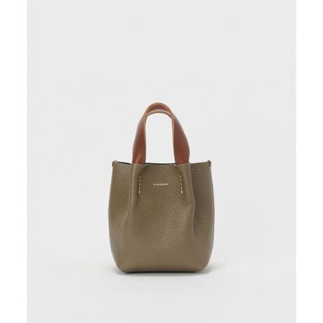 持ち手を手縫いでつまむように縫い付けたバッグです。