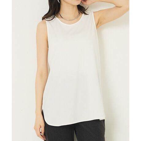 定番人気だったレイヤードタンクを、シンプル&ユーティリティーにブラッシュアップ!衿の開きがスクエアとラウンドの2WAY仕様になったので、重ねるアイテムを選ばず幅広いレイヤードが楽しめます。スクエアネックでの着用は、よりヘルシー見えするので単品でも◎穏やかなフレアラインは体の線を拾わないのに、すっきり目のアイテムの下に重ねてもゴワつかずドレープ見えしてくれます。旬のトップスに合わせやすいよう、長すぎない着丈にアップデート。シンプルになりがちな夏のコーデにヘビロテ確定のプラスワンアイテムです!