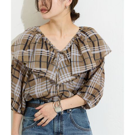 シアードビーチェックフレンチスリーブシャツ(品番:25050400918030)