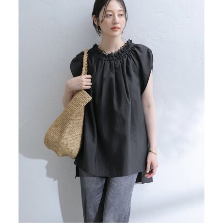 【洗える】ギャザーネックチュニックブラウス