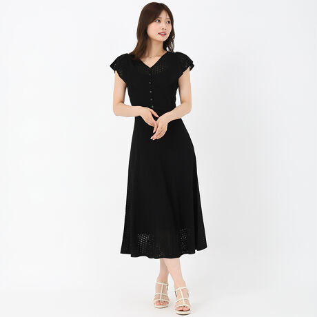 クロシェ編み風の透かし柄で、涼やかな抜け感をプラスしたニットワンピース。