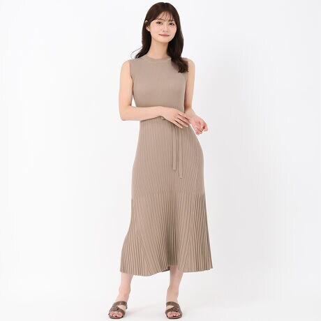 裾にプリーツをあしらったセミフレアシルエットが、歩くたびに軽やかな動きを演出するリブニットワンピース。