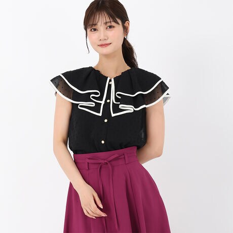 フリル襟で顔まわり華やぐ、ドビードットブラウス