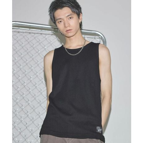 ・凹凸のあるワッフル生地が肌離れよく、快適な着心地を叶えるタンクトップ。