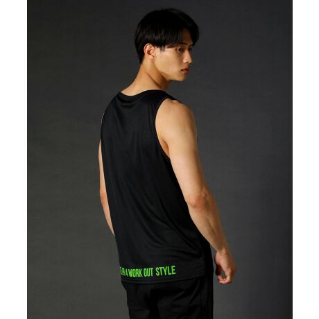 カラーはホワイト生地とブラック生地で、それぞれ裾のプリントカラーを2パターンずつの計4カラーでご用意しました。WHITE-A【プリントカラー:ブラック】、WHITE-B【プリントカラー:イエロー】と、BLACK-A【プリントカラー:ホワイト】、BLACK-B【プリントカラー:グリーン】です。スキニーパンツやショートパンツ、ジョガーパンツにさらっと合わせるだけでも夏っぽくかっこよく決まるタンクトップ。インナーとして着用し、裾のプリントを見せるようにレイヤードしていただくのもおすすめです。