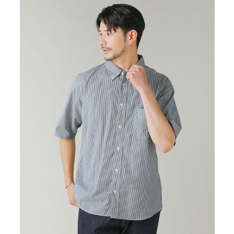 日本製ワンウォッシュボタンダウン半袖テーパードシャツ