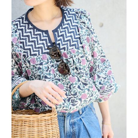 ・インドパネルの柄が他になく、盛夏の気分を盛り上げるようなスキッパーブラウス!