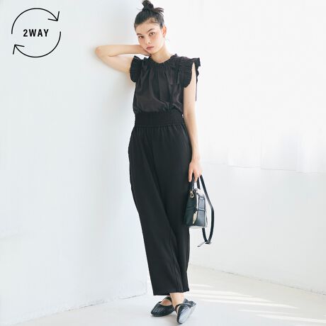 着心地とシルエットにこだわった、ウエストシャーリングサロペット