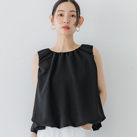 ふんわりとしたシルエットが女性らしさを引き立てる、トレンドライクなバルーンノースリーブブラウス