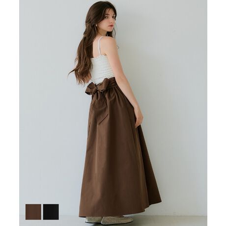 後ろ姿に差がつく、リボン×ギャザーフレアのロングスカート