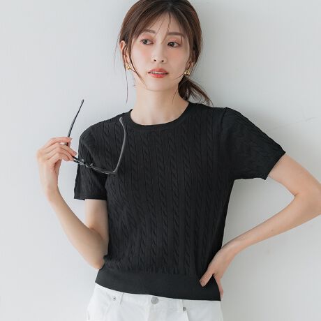 程よい厚みとリズム感のあるケーブル編みが、シンプルながらも存在感を演出。