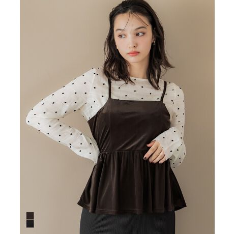 柔らかなベロア素材を使用した、女性らしいフレアシルエットのビスチェ。