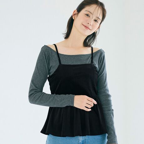 柔らかなベロア素材を使用した、女性らしいフレアシルエットのビスチェ。