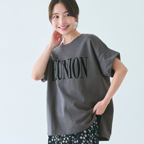 1枚でサマになるロゴTシャツに、トレンド感のある大きめロールアップ袖をプラス。