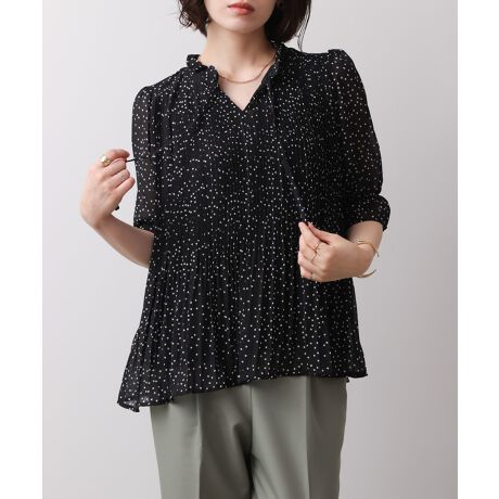 細やかなプリーツとフリルネックが女性らしいフェミニンなブラウス。ふんわりと広がるシルエットは体型を拾わず、二の腕をさりげなくカバー。前後2WAY仕様で、気分やシーンにあわせて着回しが楽しめます。
