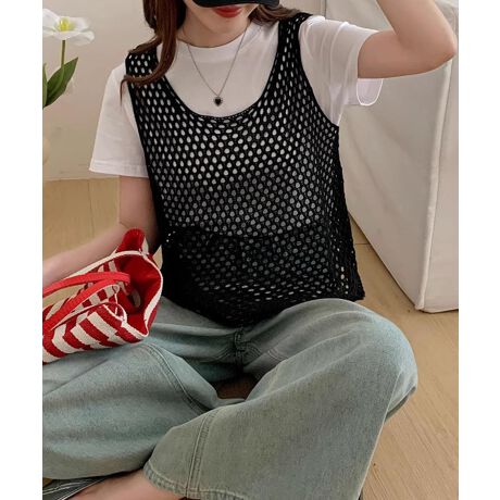 透かし編みが涼しげな印象を与えるサマーニットベスト
