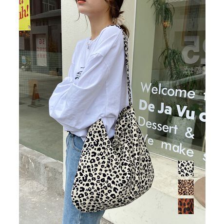 大容量 レオパード柄 ショルダーバッグ