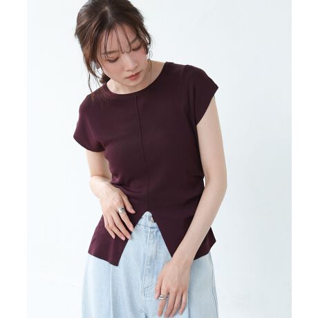 シンプルながらも一癖あるサマーニットTシャツの登場!フロントのスリットがアクセントになった一枚で着映えします。タイトすぎず、リラックス感のある絶妙なシルエットで、スタイルアップ効果も◎きれいめにもカジュアルにも着こなせる万能さが魅力です。夏に1枚持っておきたいマストアイテムです。カラーも5色展開と沢山あるので場所やその日の気分によってお選びいただけます。