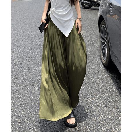 春夏に映える、なめらかな光沢感が魅力のシアーワイドパンツ。