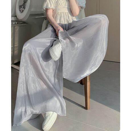 春夏に映える、なめらかな光沢感が魅力のシアーワイドパンツ。