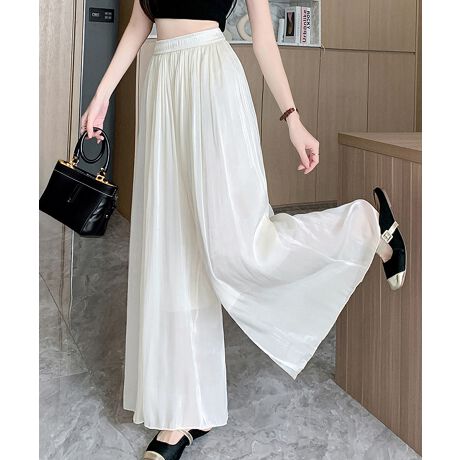 春夏に映える、なめらかな光沢感が魅力のシアーワイドパンツ。