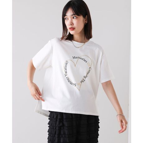 立体感のあるラメ糸刺繍のハートモチーフが可愛い大人カジュアルT-SHIRT