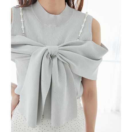 リボンが袖になるデザインで、肩回りの華奢見えが実現。