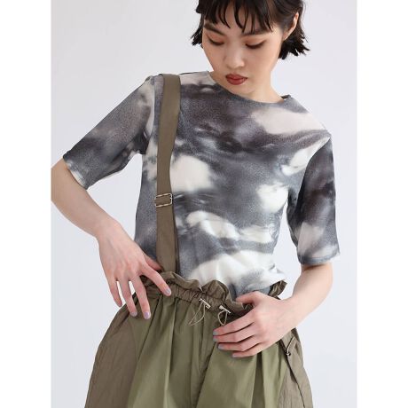 透けすぎない程よいシアー感と柔らかで伸縮性に優れた生地が特徴。
