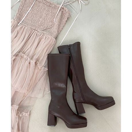 美脚を叶えるストレッチ素材と安定感のあるヒールが魅力的なロングブーツ