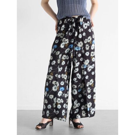 水彩画タッチのフラワープリントが目を惹くパンツ。