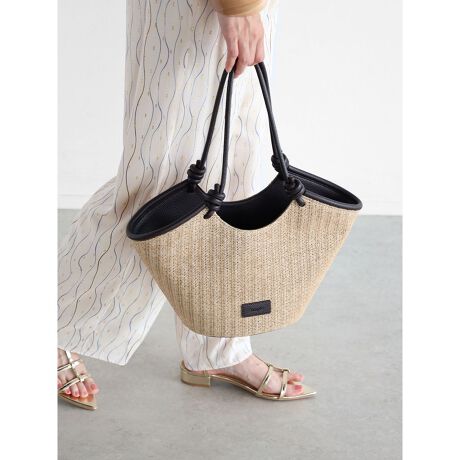 しっかりと硬いラタン素材は、ナチュラルなテイストながら大人の夏の装いにマッチ。