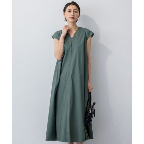 【接触冷感/撥水加工/洗える】ストレッチブロード Vネックワンピース