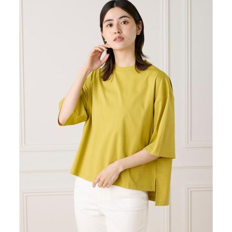■デザイン・ゆとりのある身巾でリラックス感のあるシルエット・詰まり過ぎない程よいサイジングのクルーネック・5分袖で肘が隠れるくらいの袖丈・袖口は折り返して着るとニュアンスある印象・ジャケットやジレなどのインナーにもおすすめ■素材綿100%のカットソーを使用。美しい光沢感に加え、透けにくく清涼感のある程良い肉感と汗ばむ季節に嬉しい接触冷感の機能性付きです。・水洗い可同素材のTシャツ品番:7052190011■サンプル撮影商品画像の商品はサンプルです。実際の商品とはサイズや色味、素材、デザイン等の仕様が若干変更になる場合がございます。■照明の関係により、実際の製品とは色味が違って見える場合があります。またパソコン・スマートフォンなどの環境により、若干製品と画像のカラーが異なる場合もございます。■サイズ表記はあくまで目安となります。
