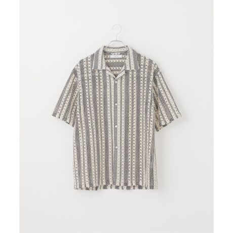 トレンドの透かし編みの素材を使った開襟シャツ。