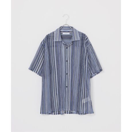 トレンドの透かし編みの素材を使った開襟シャツ。