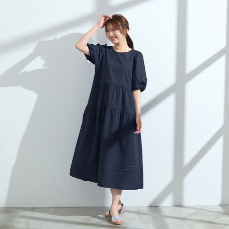 シンプルながら可愛い印象に仕上げた、暑い夏でも快適に着られるワンピース。