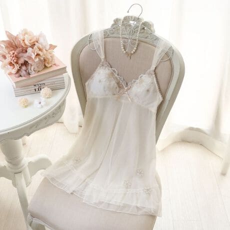 アネモネのお花を大胆に刺繍したレースは、存在感あふれる印象の中に繊細なステッチをあしらうことで、可愛らしくガーリーに仕上がりました。その周りにはラメ糸をたっぷりとほどこした小さなお花のアップリケを重ねて、奥行き感をプラス。様々なお花がレース全体に咲きほこっているような、華やかさを演出しています。ストラップにはメロウ加工したソフトチュールをあしらい、リサマリ初の2WAY仕様に。ふわふわとした軽やかさに思わずきゅんとする、遊び心を詰め込みました。身生地は透け感を楽しめるおそろいのチュール素材で、裾に切り替えとギャザーを入れることで、女の子らしいフレアシルエットが完成。アシンメトリーにお花のアップリケを散りばめました。カラーは淡いグラデーションでまとめて、チュールやアップリケのシアー感を引き立たせた、ロマンティックなコレクションです。