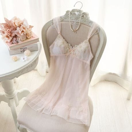 アネモネのお花を大胆に刺繍したレースは、存在感あふれる印象の中に繊細なステッチをあしらうことで、可愛らしくガーリーに仕上がりました。その周りにはラメ糸をたっぷりとほどこした小さなお花のアップリケを重ねて、奥行き感をプラス。様々なお花がレース全体に咲きほこっているような、華やかさを演出しています。ストラップにはメロウ加工したソフトチュールをあしらい、リサマリ初の2WAY仕様に。ふわふわとした軽やかさに思わずきゅんとする、遊び心を詰め込みました。身生地は透け感を楽しめるおそろいのチュール素材で、裾に切り替えとギャザーを入れることで、女の子らしいフレアシルエットが完成。アシンメトリーにお花のアップリケを散りばめました。カラーは淡いグラデーションでまとめて、チュールやアップリケのシアー感を引き立たせた、ロマンティックなコレクションです。
