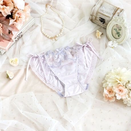 両サイドのリボンは結び目がほどける仕様のため、ウエストサイズの調整が可能。お好みの着け心地に調整していただけます。リボンは伸縮性があるため解けにくく、ほんのりとセクシーさを感じさせてくれるアイテムです。