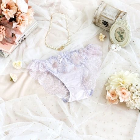 後身生地は総レースになっており、伸縮性のあるレースが肌に心地よくフィットします。足口にはゴムを使っていないので食い込まず、少しゆとりをもった履き心地です。ボトムスへもショーツラインが響きません。通気性がよく、快適にご着用いただけます。甘すぎず、大胆過ぎない特別感あふれるデザインが、ラグジュアリーな大人の雰囲気を演出します。