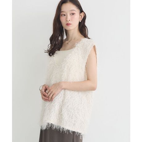 ふさふさとした毛足の長い生地が目を惹くお洒落なベスト。前後どちらを前にしても着用して頂ける2WAY仕様で、スタイリングの幅も広がります。腰回りをカバーする着丈でスタイルアップ効果にも期待。いつもの着こなしにプラスするだけで奥行きのあるコーディネートが完成するおすすめのアイテムです。