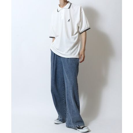 KANGOL/カンゴール 別注 オーバーサイズ ワンポイント刺繍 リブライン 半袖 ポロシャツ レディース メンズ