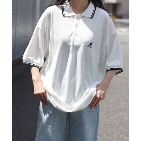 KANGOL/カンゴール 別注 オーバーサイズ ワンポイント刺繍 リブライン 半袖 ポロシャツ レディース メンズ