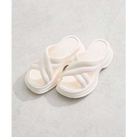 ボリュームのあるクロスデザインが洒落感のあるサンダル。トレンド感たっぷりな厚底ソールが目を惹き、スタイルアップ効果も期待出来ます。軽量で疲れにくいのも嬉しいポイント。デイリーにはもちろん、リゾートシーンでも活躍するおすすめのアイテムです。※モデル着用画像は、光の当たり具合で色味が違って見える場合がございます。※お使いのモニター環境によって商品の色味が違って見える場合がございます。
