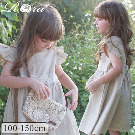 Rora ワンピース キッズ 通販 ローラ リネンワンピース ノエル 半袖 フリル レース 無地 コットンリネン 綿麻 夏服 夏 カジュアル ナチュラル かわいい おしゃれ 女の子 女子 子供 子ども こども 子ども服 子供服 こども服 キッズファッション