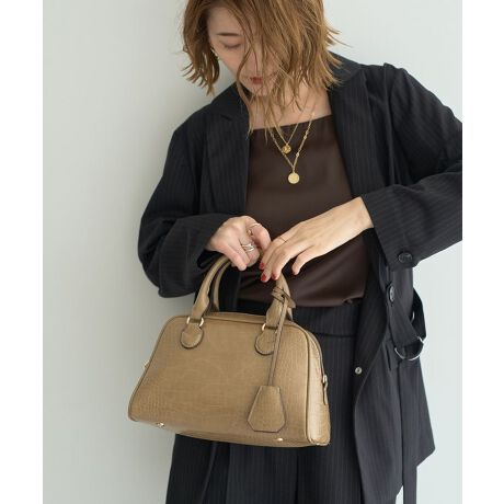高級感のあるクロコ型押しを施した合皮ボストンバッグ。