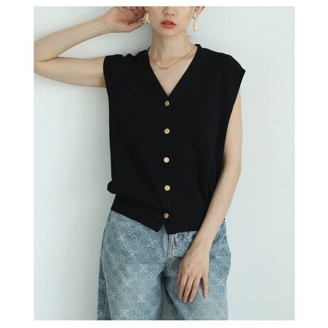 ハンサムライクなゴールド調ボタンVネックサマーニットベスト。程よい開きのVネックでヘルシーな大人スタイルに。ゴールド調の大きなボタンがコーデのアクセントになります。プルオーバーのようにも着用できる着回し力の高さもポイント。ゆとりのあるシルエットで体型カバーにもおすすめです。