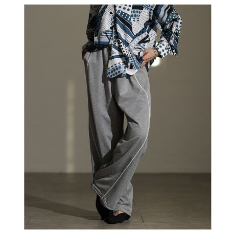トレンドライクに着こなせるパイピングラインスウェットパンツ。滑らかなスウェット素材に配色パイピングを施したデザイン。細めのラインが縦長効果を生み、脚をすっきりと見せてくれます。ウエストはドロスト仕様で調整可能なので楽に穿いていただけます。スウェットながらきれいめトップスとも好相性です。