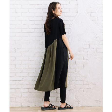 21号(6L〜) 異素材コンビカラーブロックワンピース