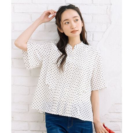 21号(6L〜) FONTLAB タックジョーゼットドットブラウス